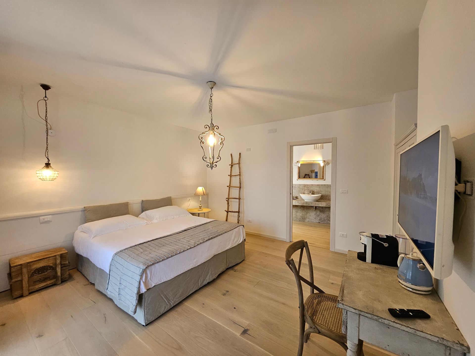 Ogni camera è dotata di aria condizionata per garantire una temperatura piacevole in ogni stagione. I bagni privati sono spaziosi e completi di tutti i comfort, inclusi asciugacapelli e set di cortesia. Inoltre, le camere sono dotate di TV, mini bar, connessione Wi-Fi gratuita e una selezione di tè e caffè per un momento di relax durante il soggiorno